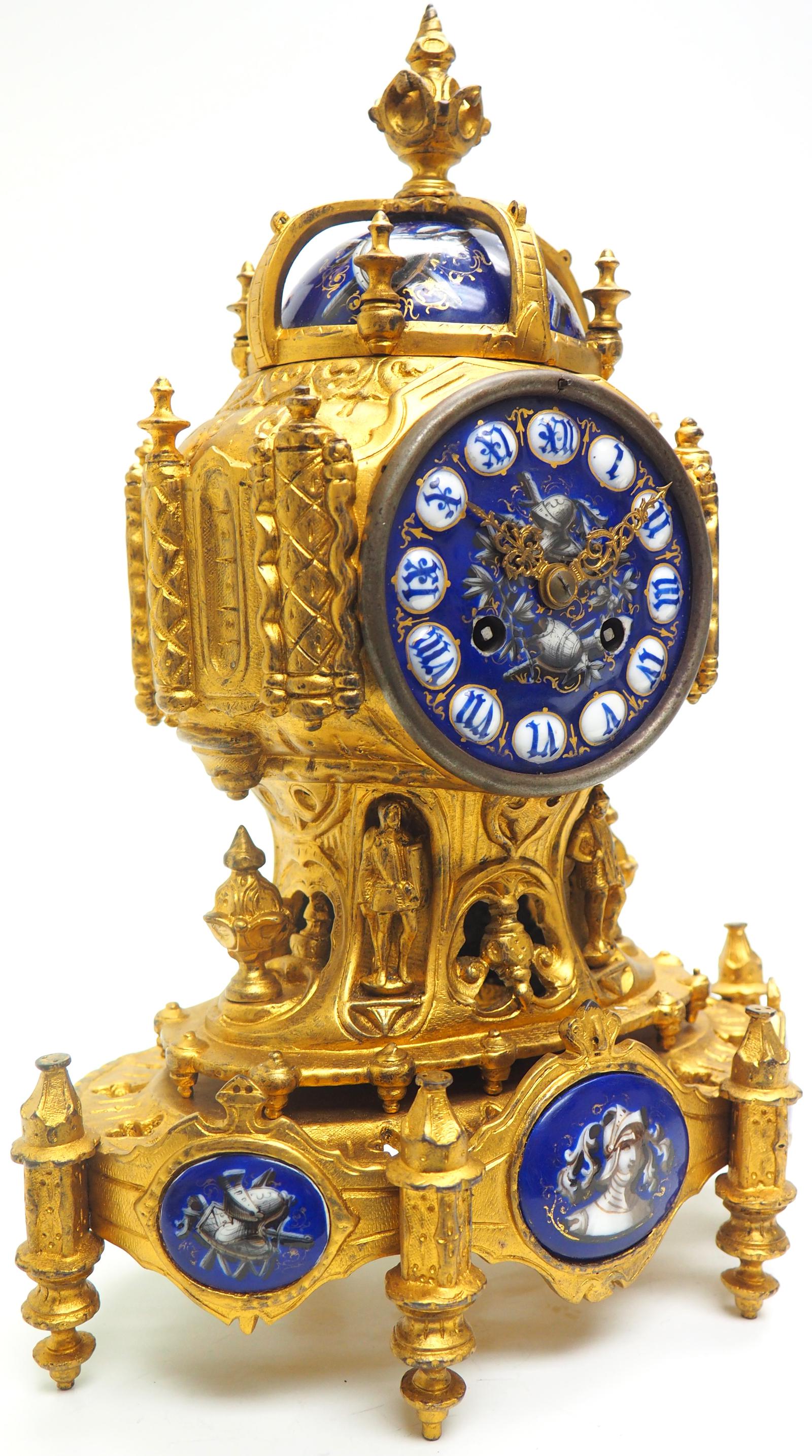 Antique 8 Day Ormolu Mantel Clock Sevres Gothic Knight Tower French Mantle Clock