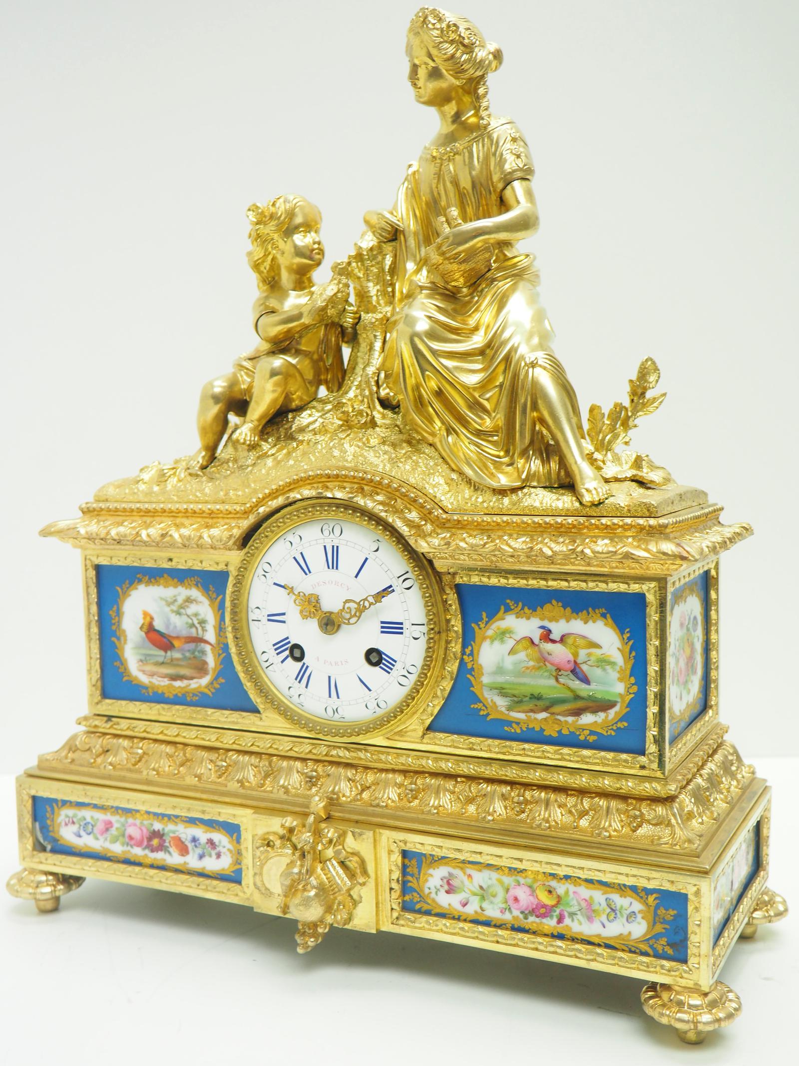 Antique 8 Day Ormolu Mantel Clock Sevres Mother & Child French Mantle Clock