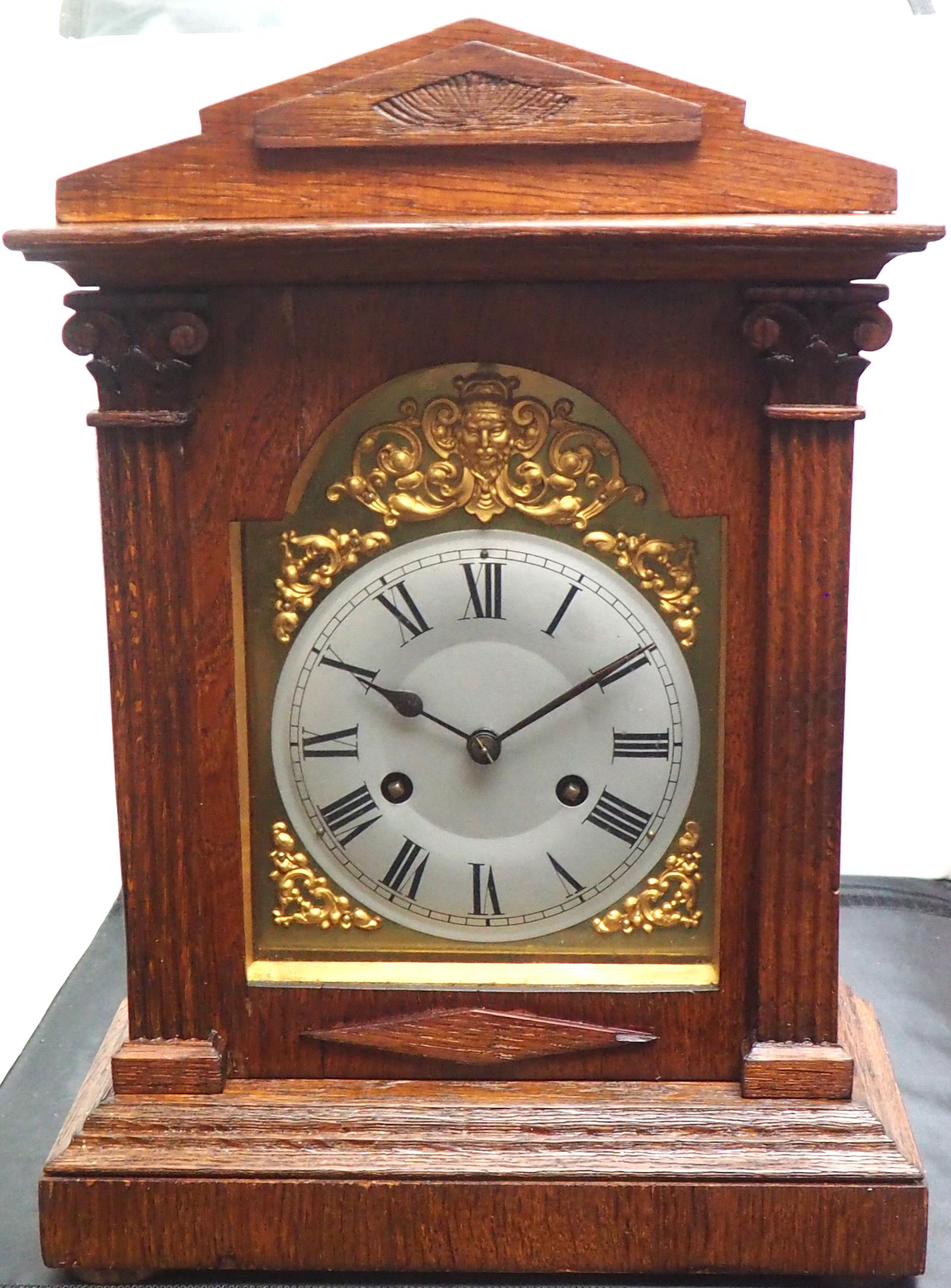 Antique 8 Day Striking Classical Design Oak Mantel Clock (1 of 10)