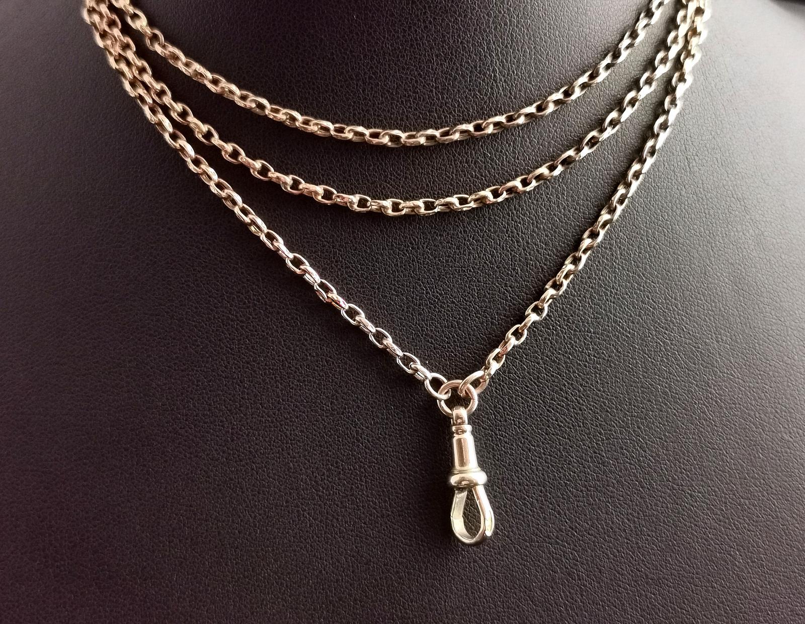 Antique 9ct Gold Belcher Link Chain Necklace, Muff Chain, Longuard