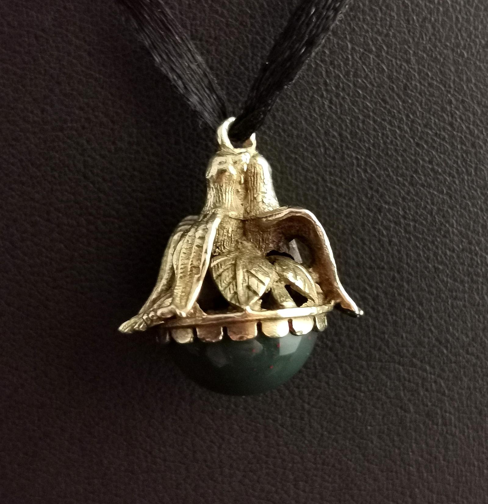 Antique 9ct Gold Doves Seal Fob, Bloodstone