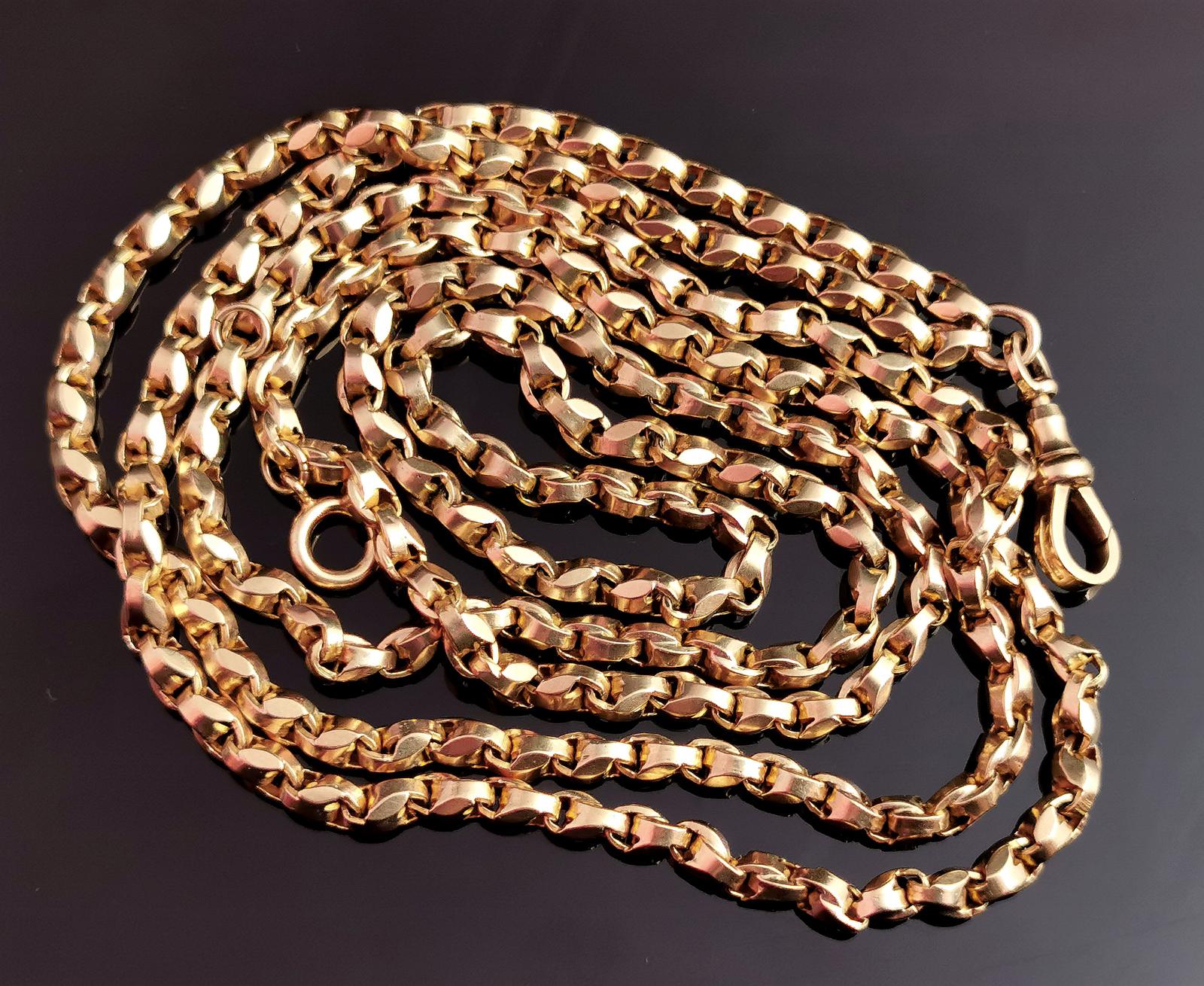 Antique 9ct Gold Fancy Link Longuard Chain Necklace, Muff Chain