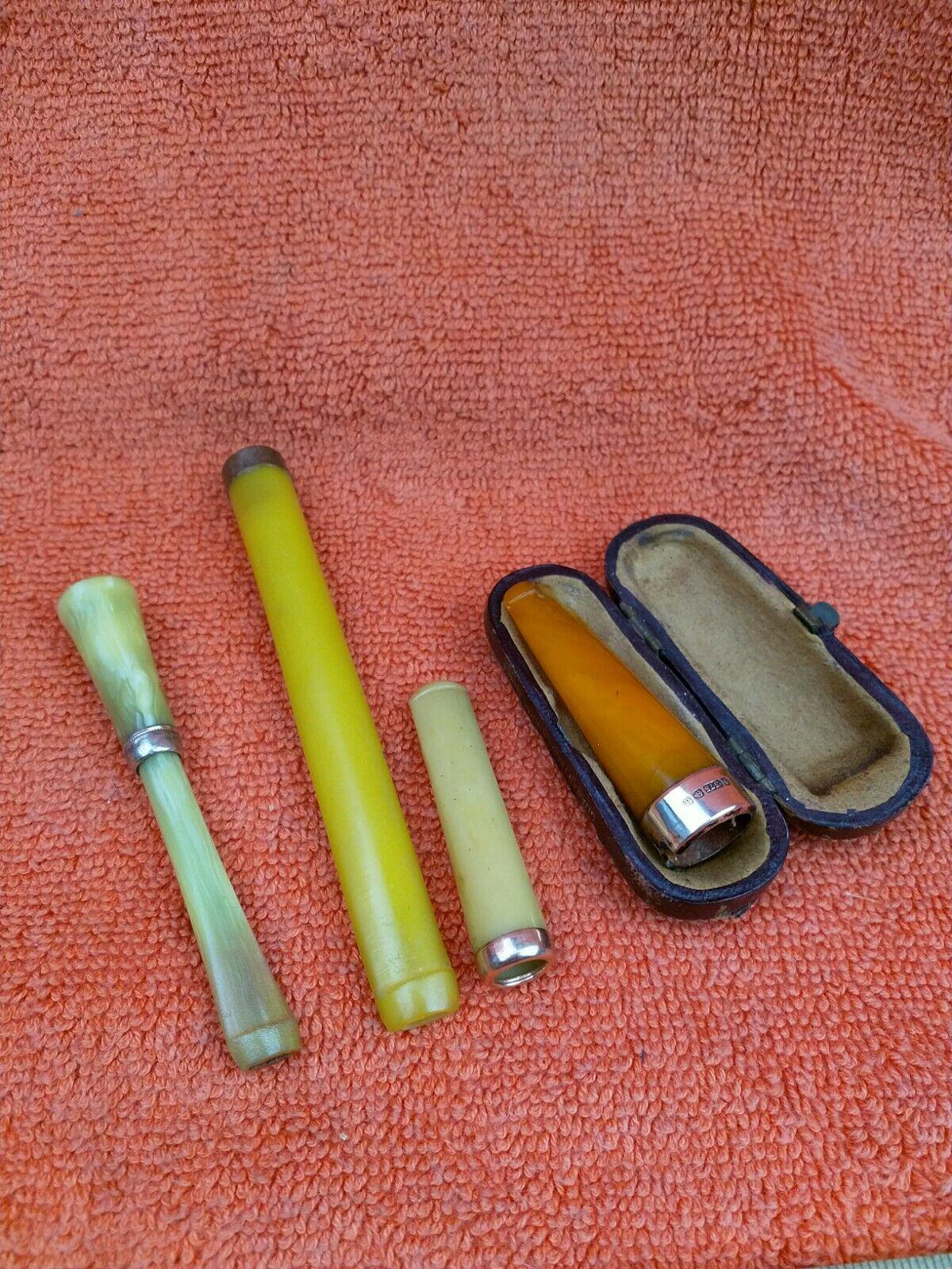 Antique 9ct Gold Hallmarked Amber Cheroot Holder 1904 HF & Others