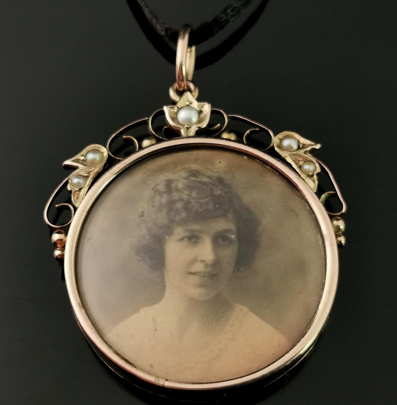 Antique 9ct Gold Locket, Seed Pearl, Edwardian