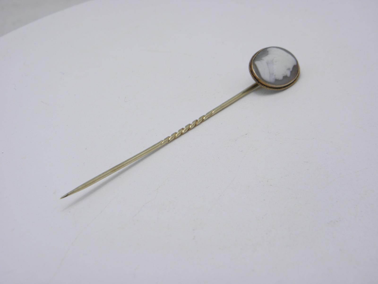 Antique 15ct Rose Gold Hardstone Machiavelli Cameo Stock Pin Brooch Tie, Lapel, Cravat Etc