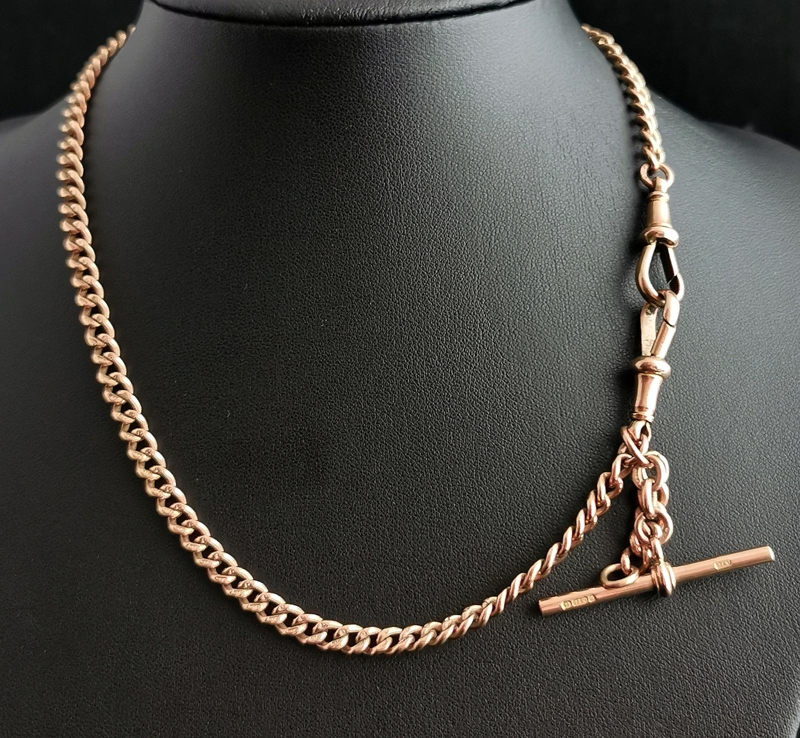 Antique 9ct Rose Gold Albert Chain l, Curb Link, Watch Chain Necklace