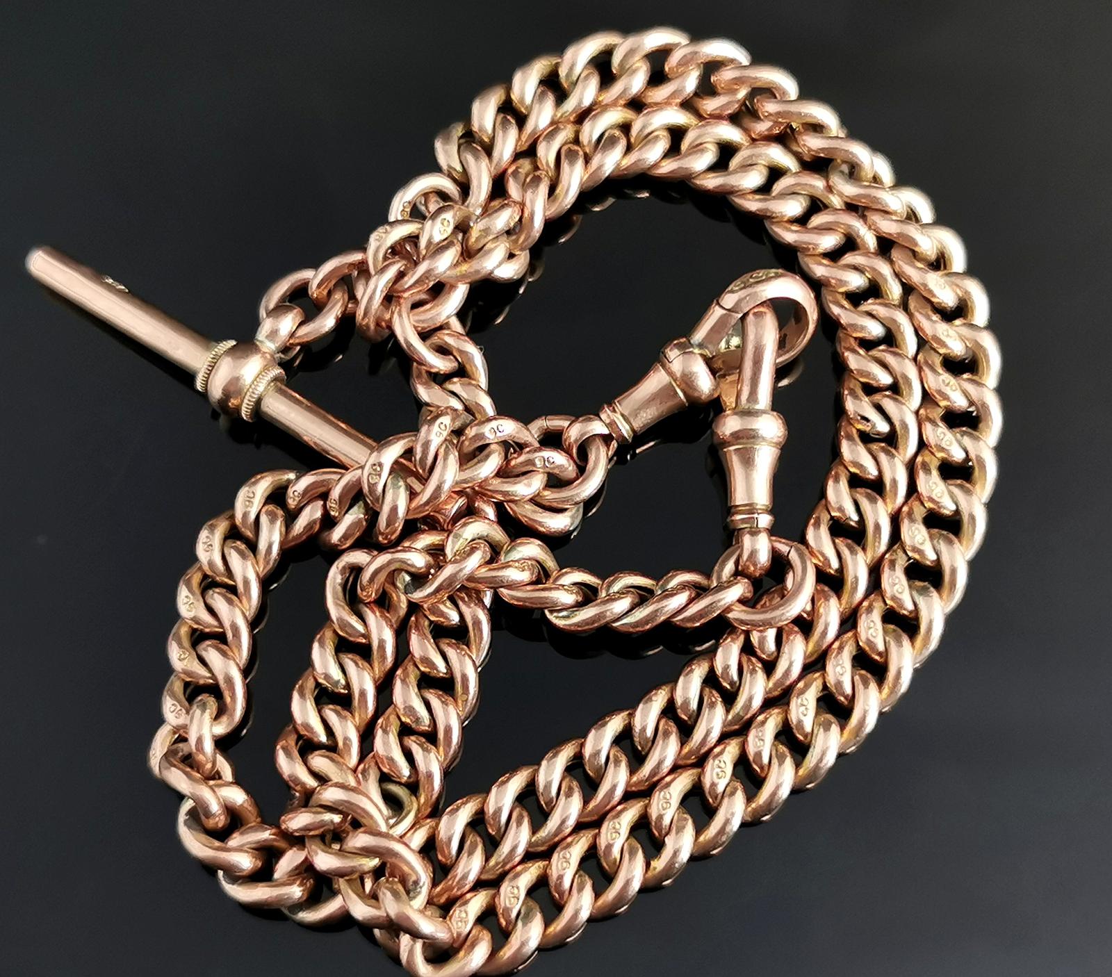 Antique 9ct Rose Gold Albert Chain, Watch Chain Necklace, Edwardian