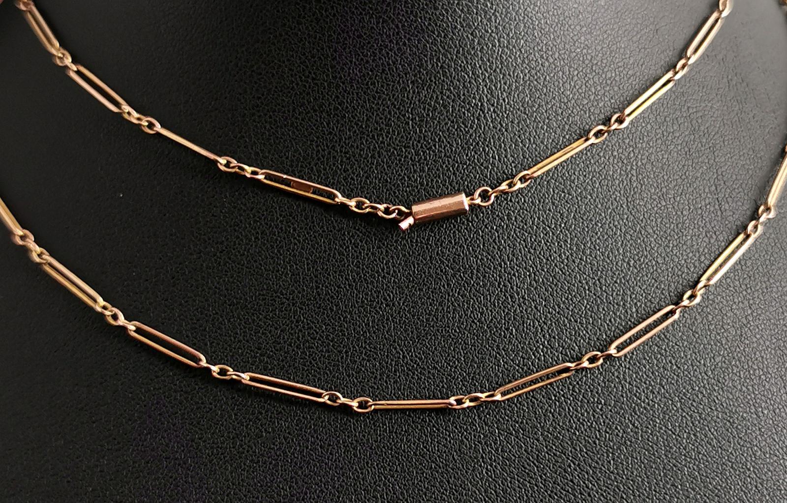 Antique 9ct Rose Gold Fancy Link Chain Necklace, Edwardian