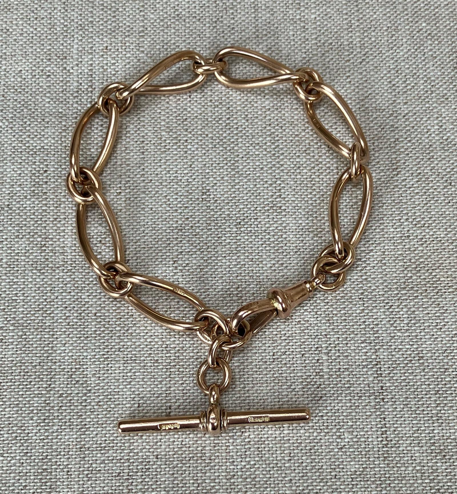 Antique 9ct Rose Gold Heavy Figaro Link Albert Chain Bracelet