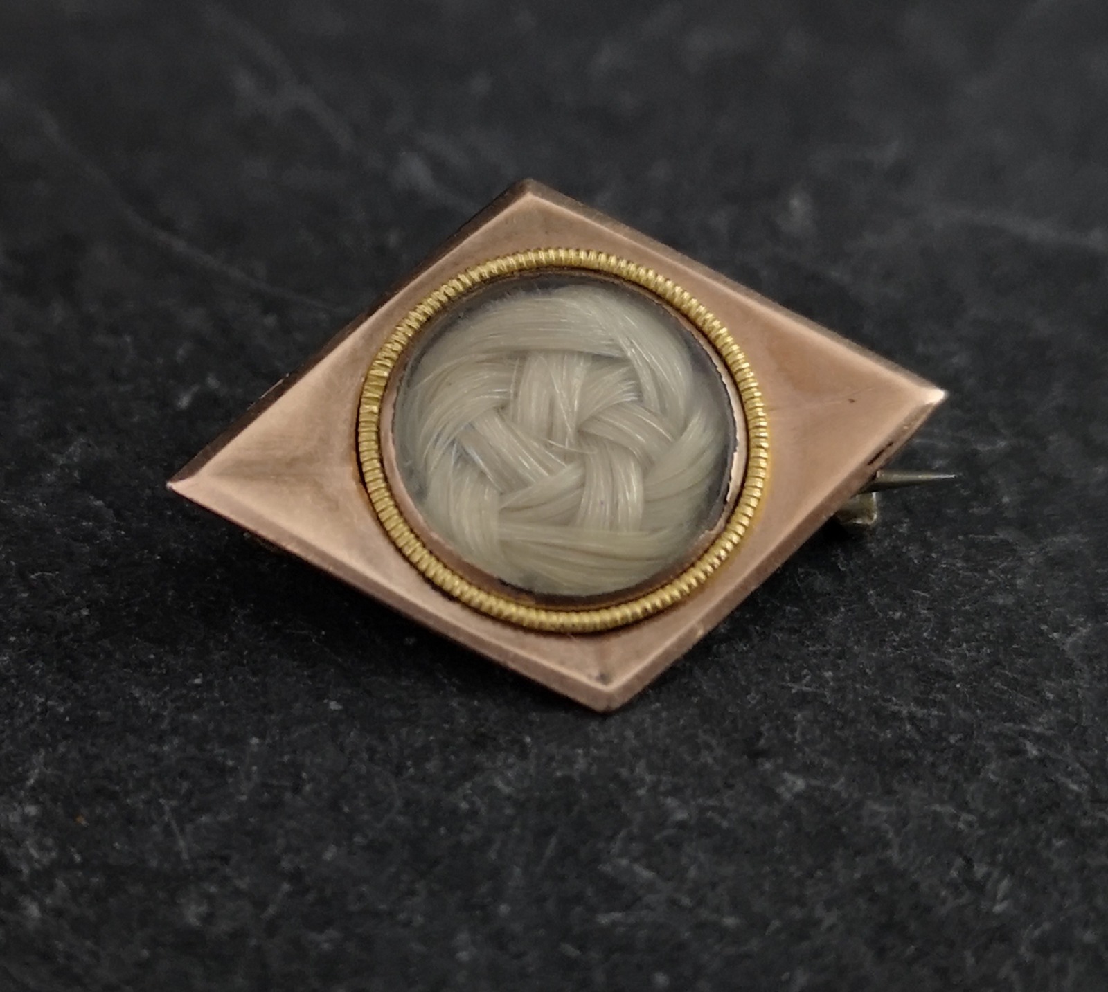 Antique 9ct Rose Gold Mourning Brooch, Hairwork