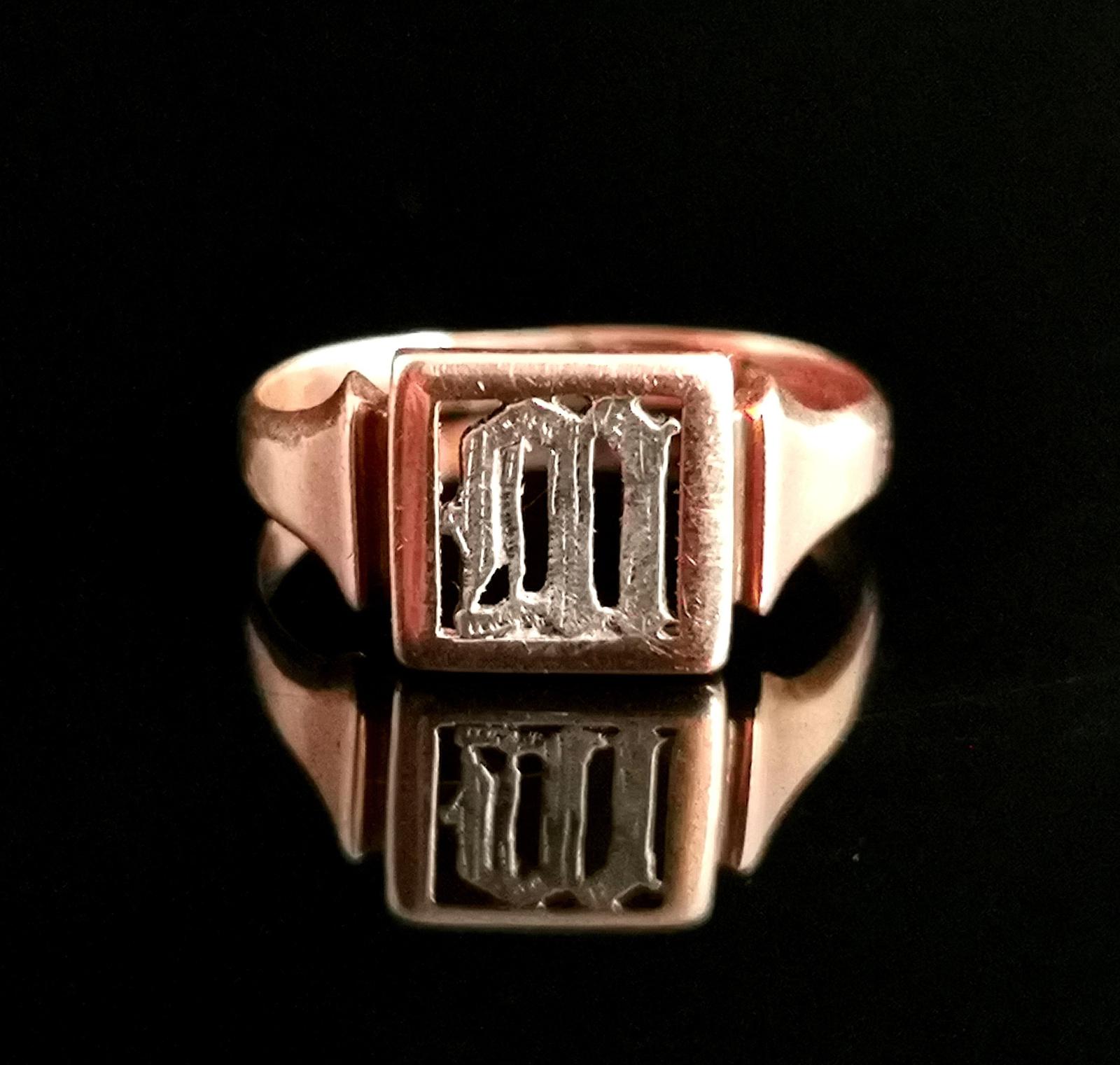 Antique 9ct Rose Gold Signet Ring, Initial M, Silver