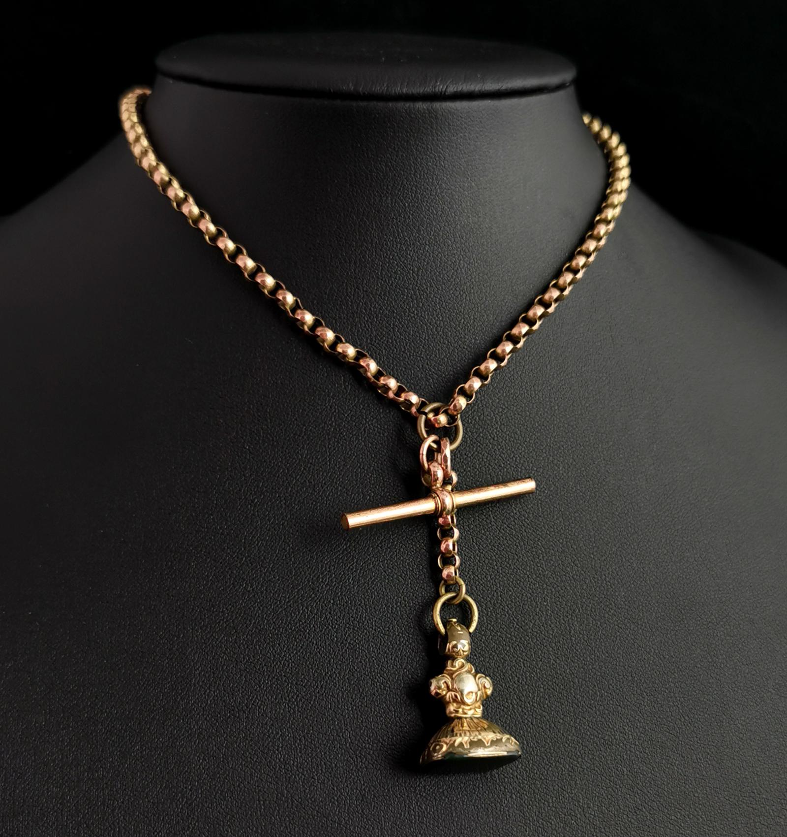 Antique 9ct Rose Gold Watch Chain, Albert Chain, Bloodstone Seal Fob