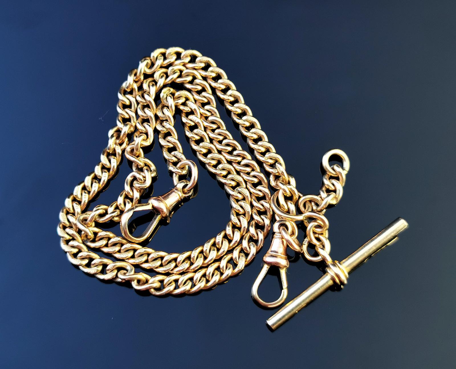 Antique 9ct Yellow Gold Double Albert Chain, Watch Chain, Curb Link