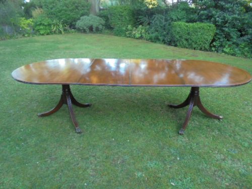Antique 9ft Mahogany Twin Pillar Extending Dining Table c.1900