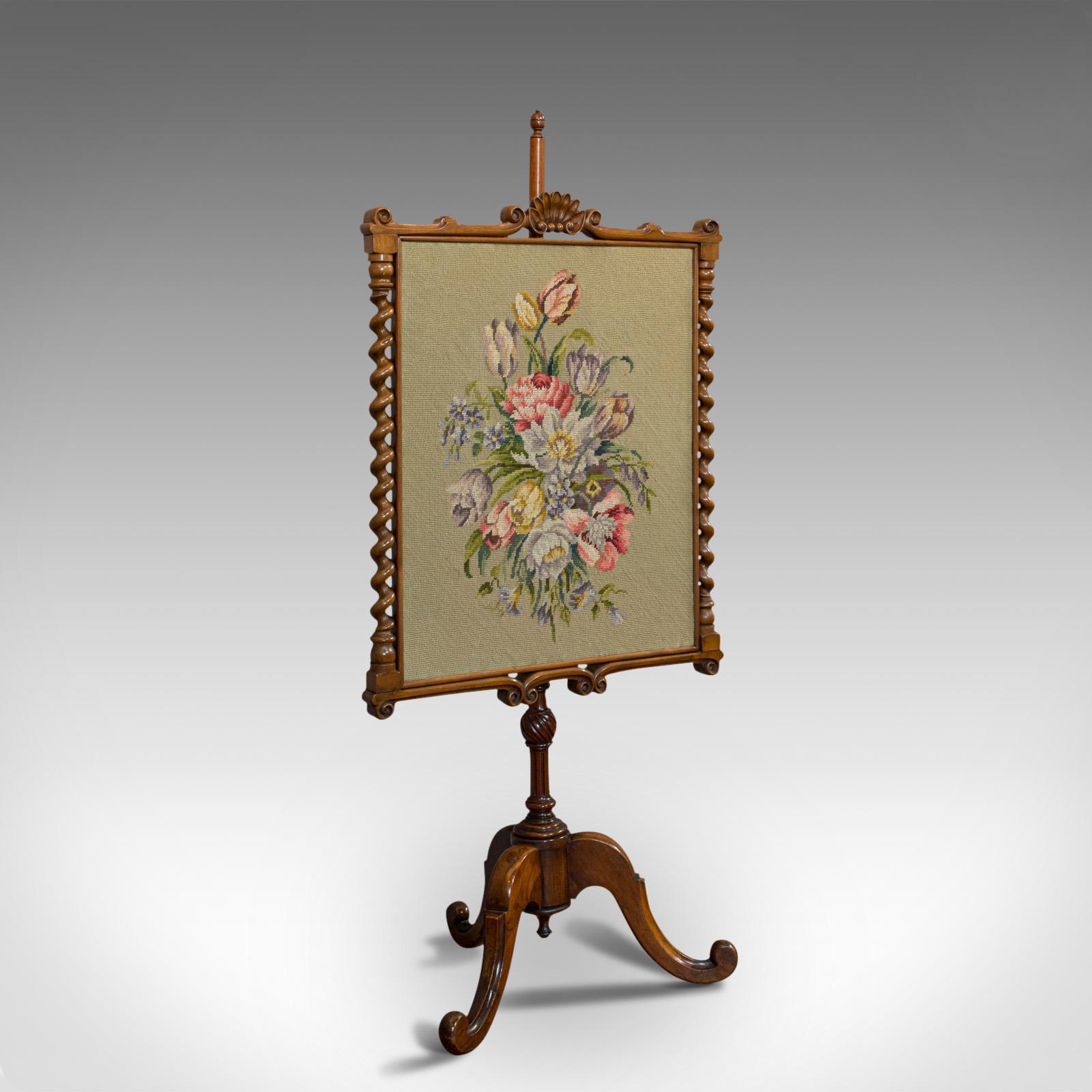 Antique Adjustable Fire Screen, Walnut, Needlepoint, Decorative, Pole, Regency