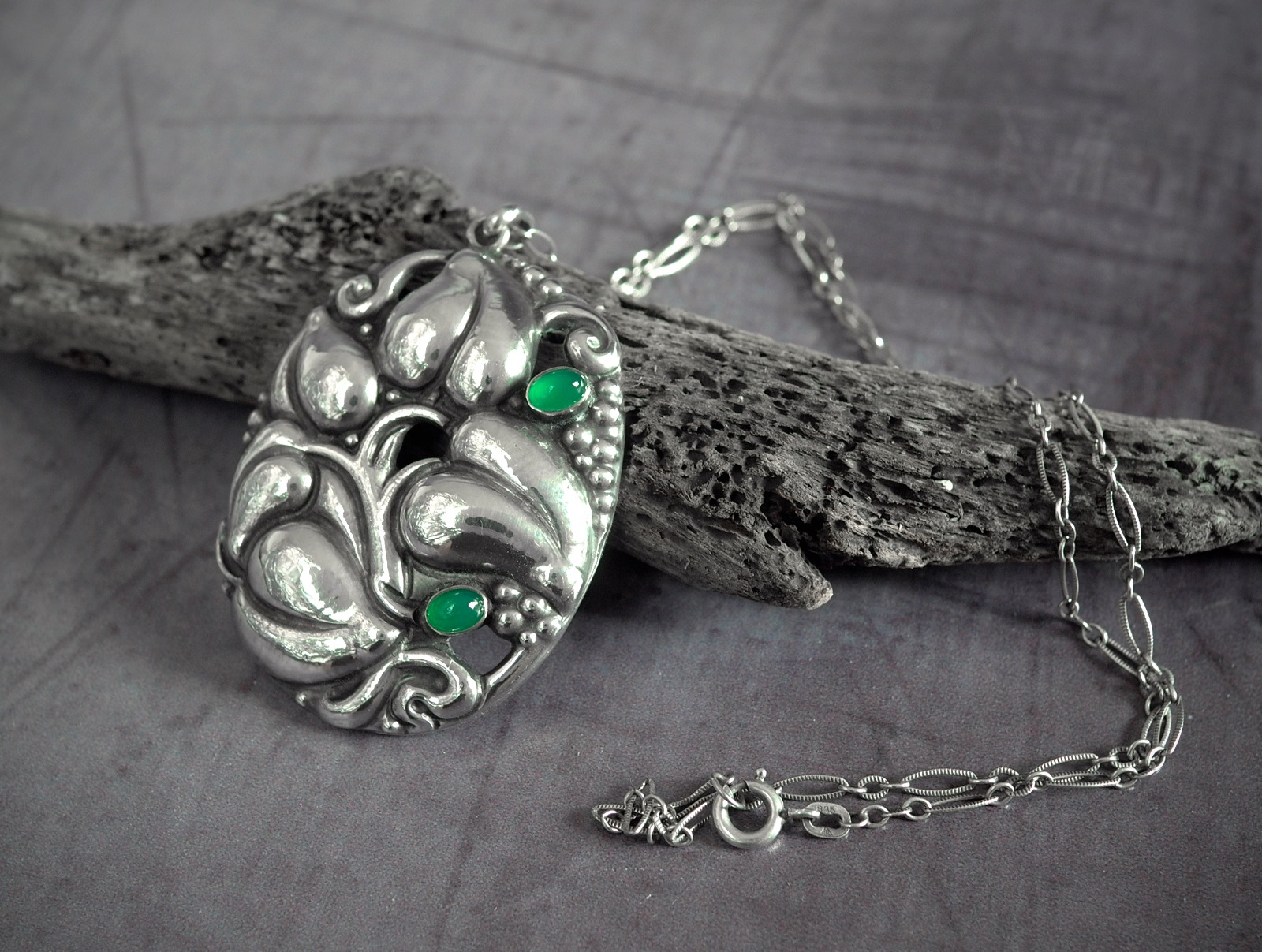 Antique Adolf Mayer Jugendstil Silver Chrysoprase Pendant C.1910
