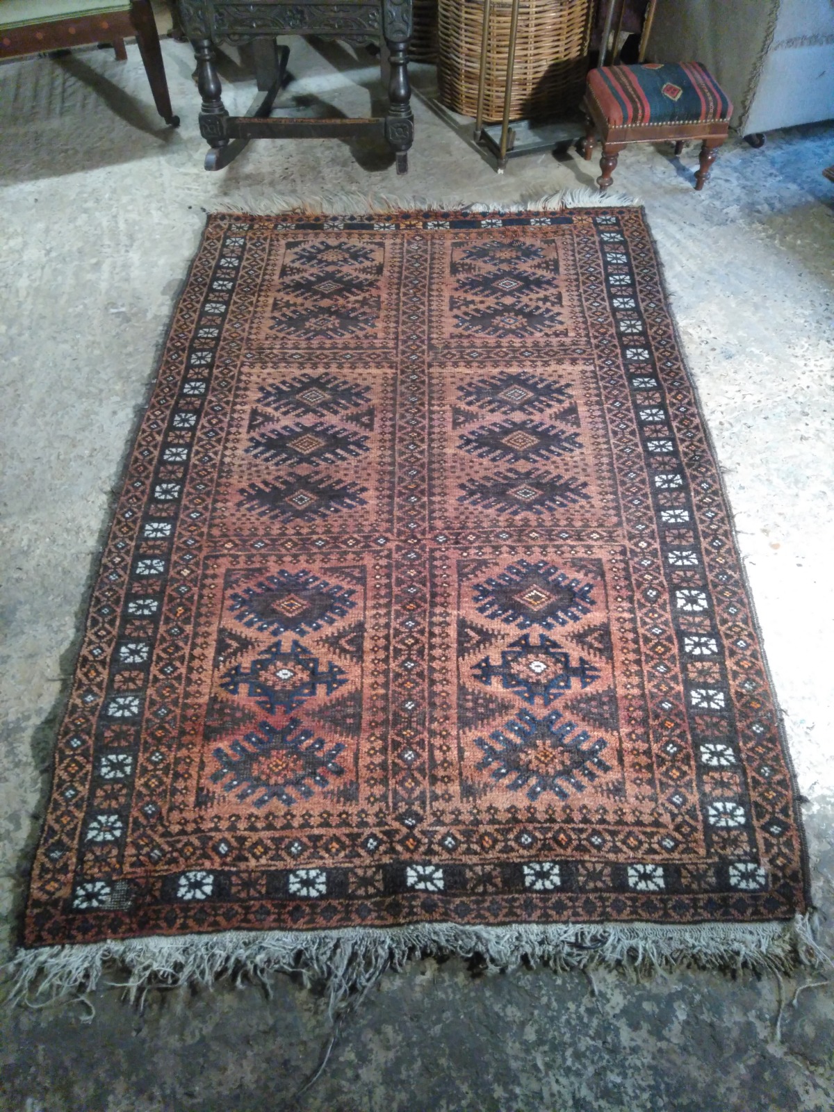Antique Afghan Belouch Rug. Turkomen Design Natural Dyes Muted Colours