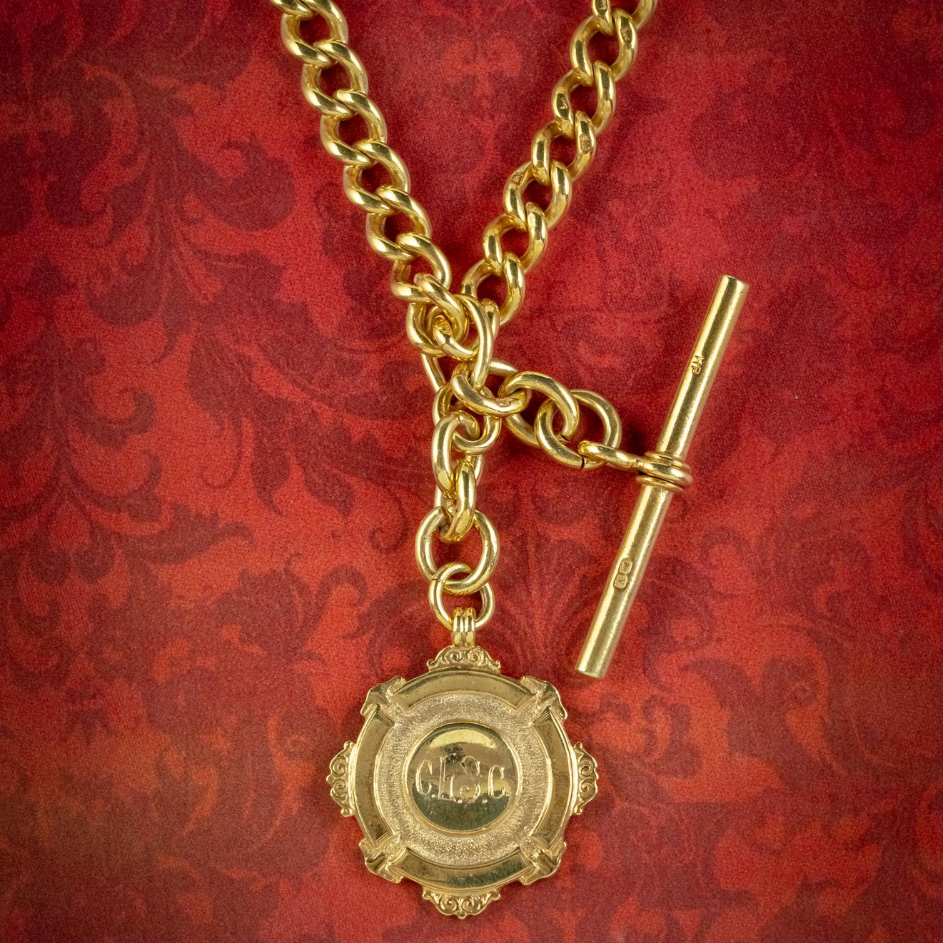 Antique Albert Chain Necklace Sterling Silver 18ct Gold Gilt Dated 1920