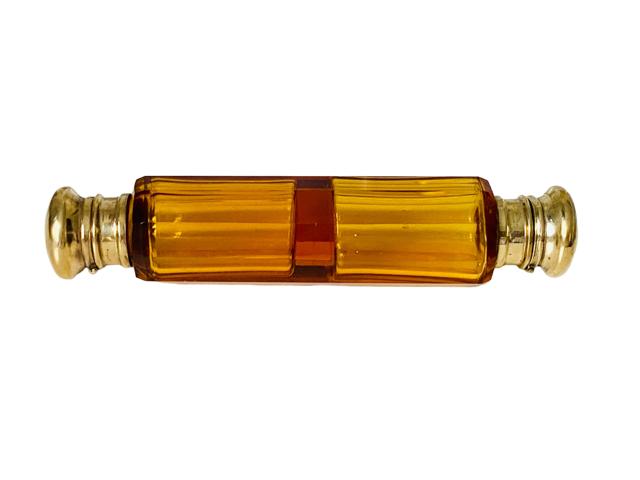 Antique Amber Glass Double Ended Perfume Scent Bottle c.1880