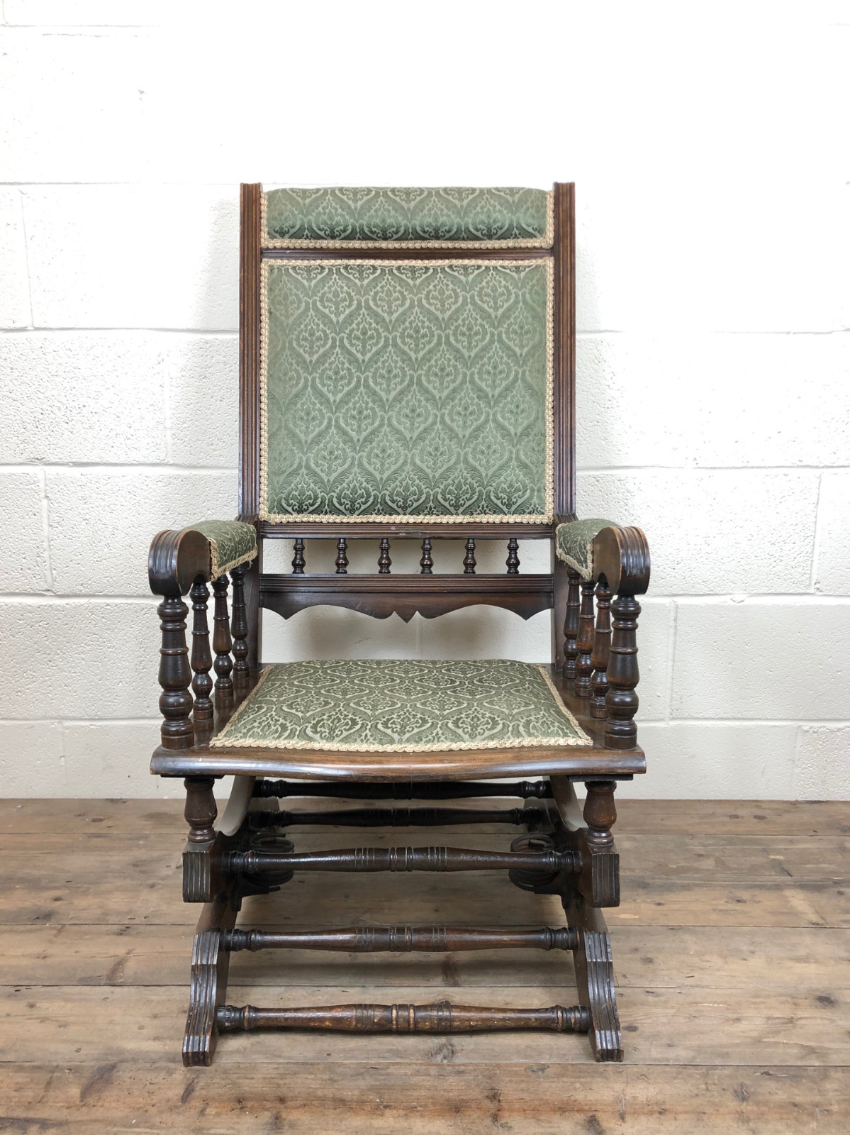 Antique American Rocking Chair with Green Upholstery (1 of 9)