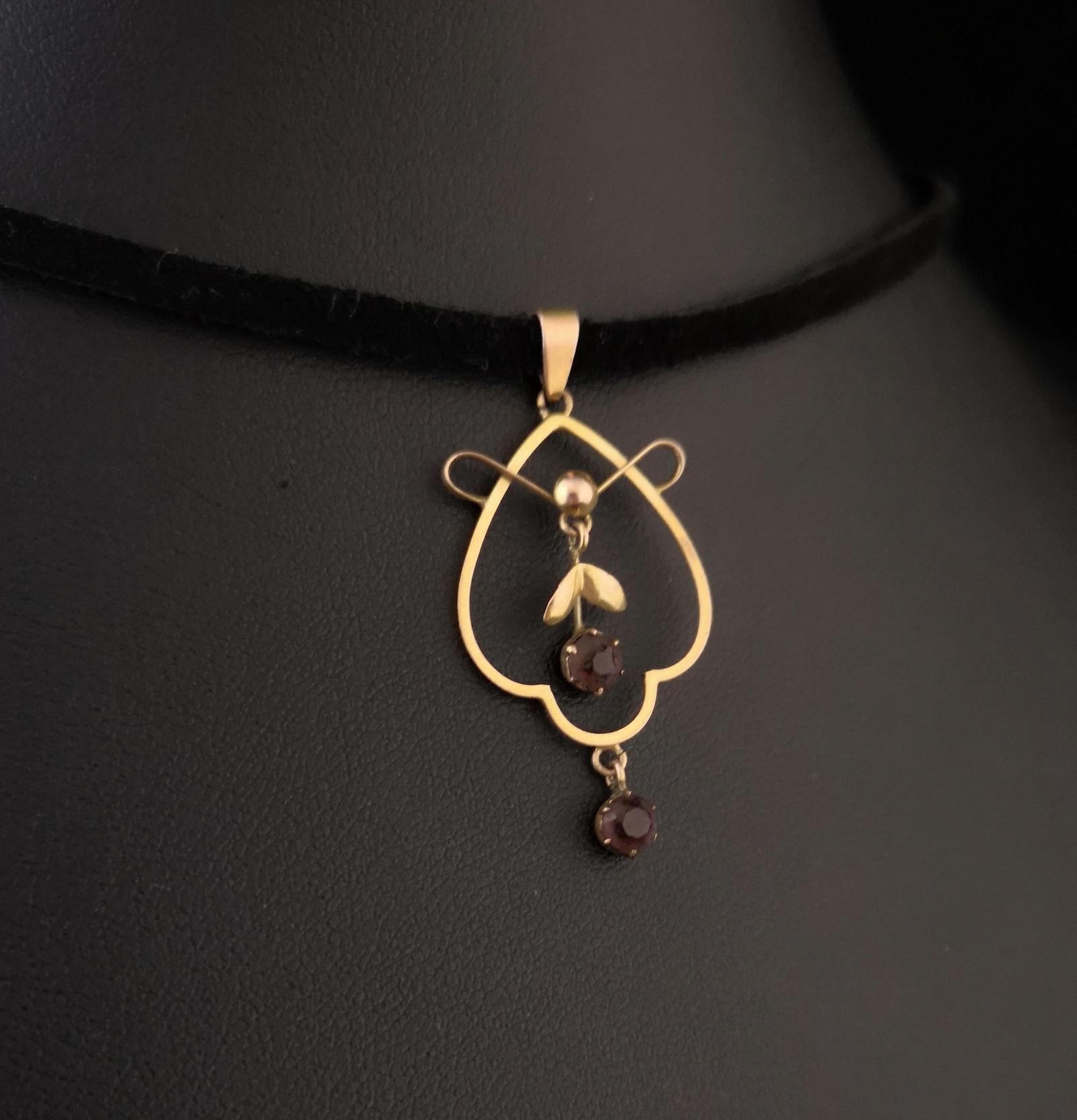 Antique amethyst lavalier pendant, Art Nouveau, 9ct gold