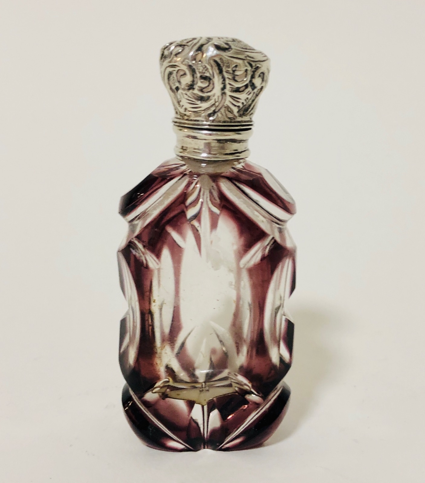 Antique Amethyst Purple Cut Glass Scent Bottle with Solid Silver Top