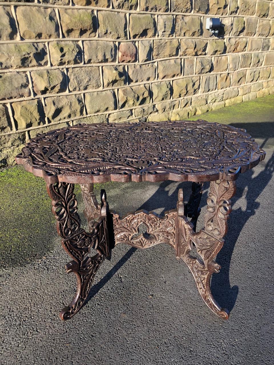Antique Anglo Indian Carved Folding Coffee Table