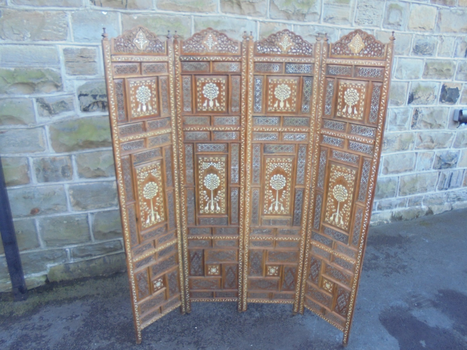 Antique Anglo Indian Inlaid Folding Screen c.1900