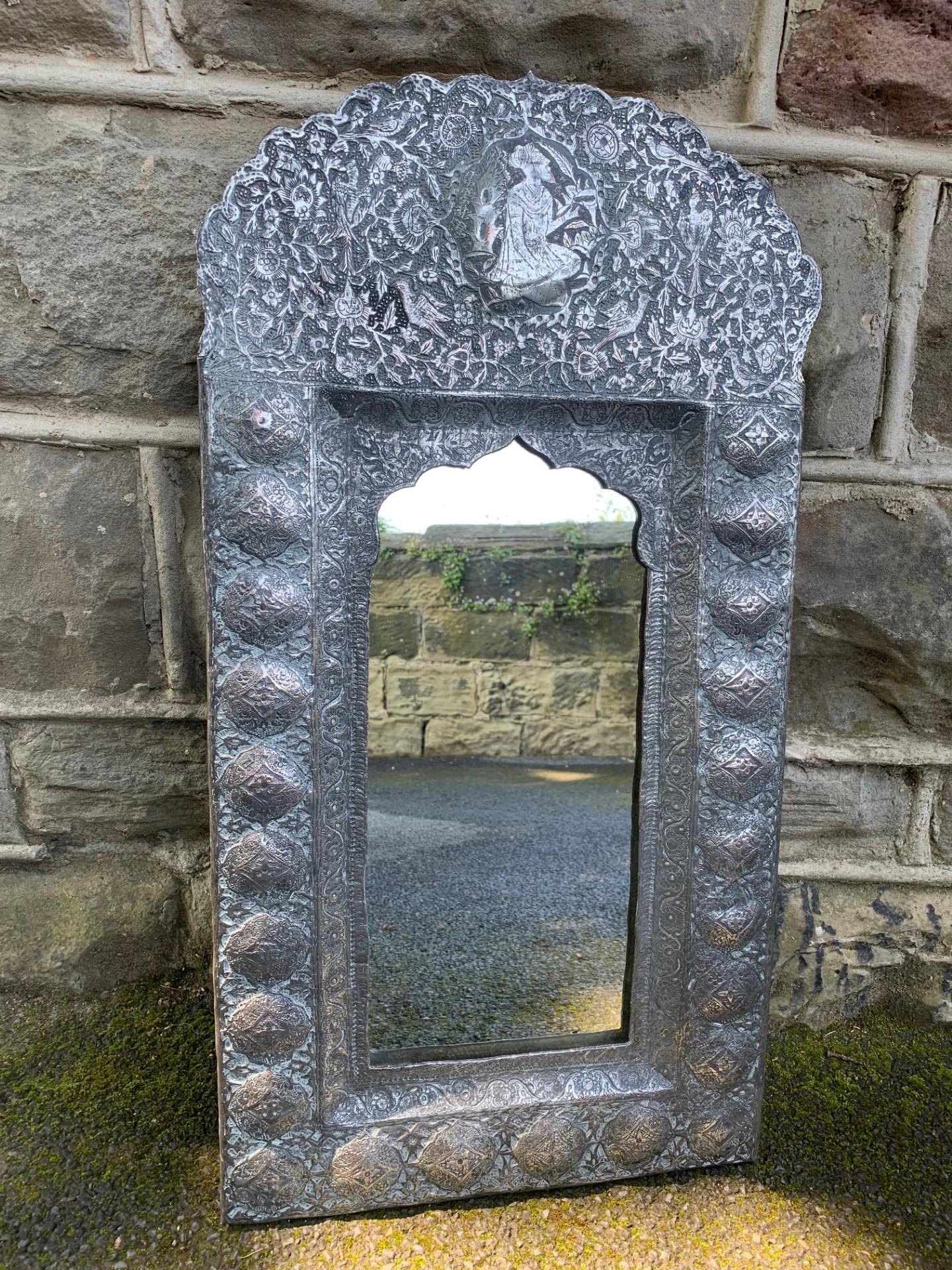 Antique Anglo Indian Moorish Whit Metal Mirror