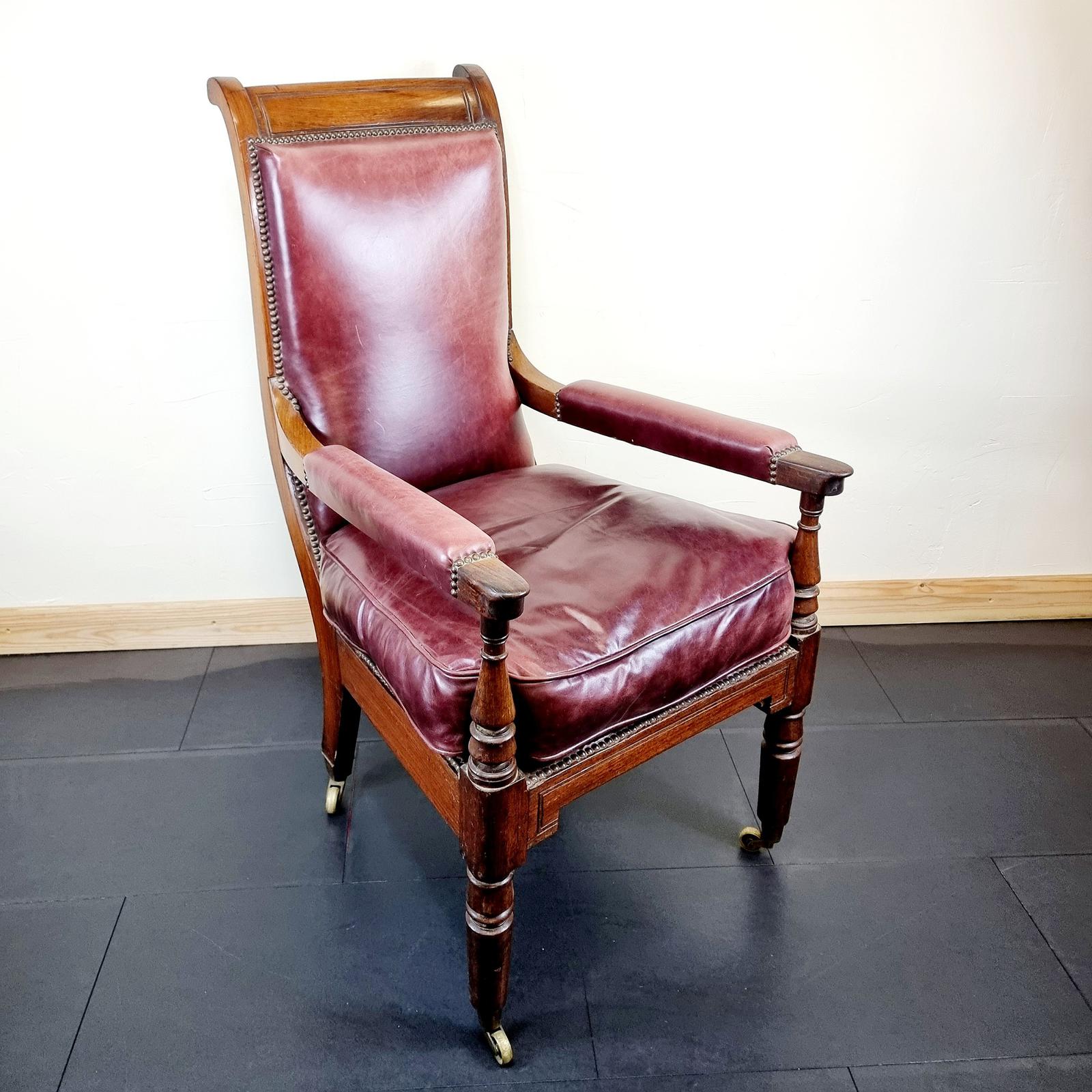 Antique Anglo Indian Rosewood & Leather Campaign Chair