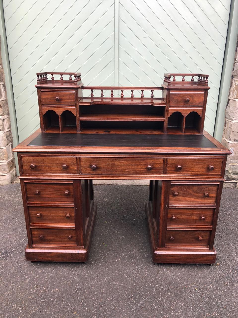 Antique Anglo Indian Teak Pedestal Writing Desk