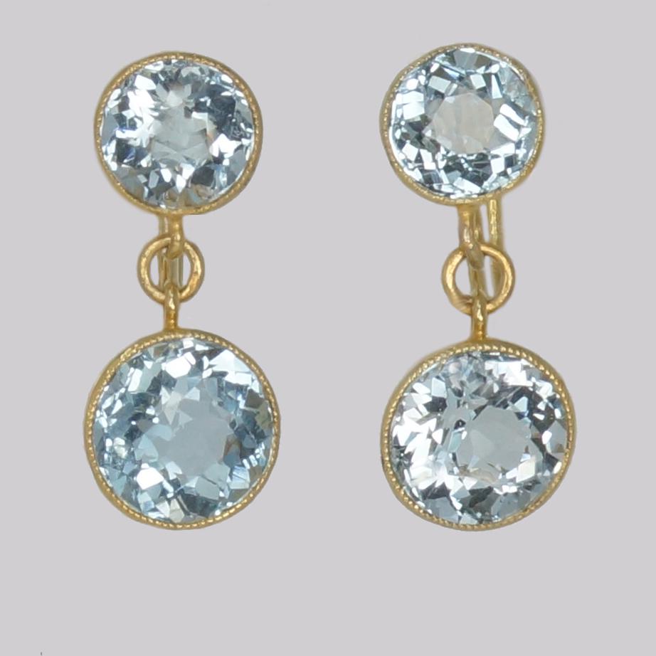 Antique Aquamarine 15ct Gold Drop Earrings Edwardian Aquamarine Dangle Earrings