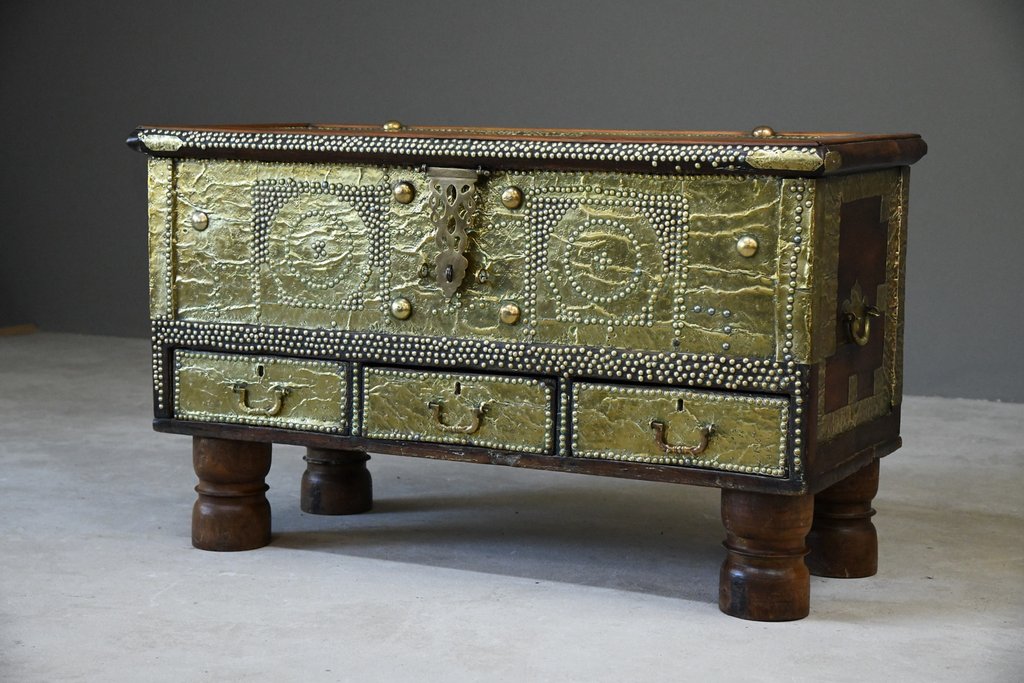 Antique Arab Teak & Brass Bound Chest