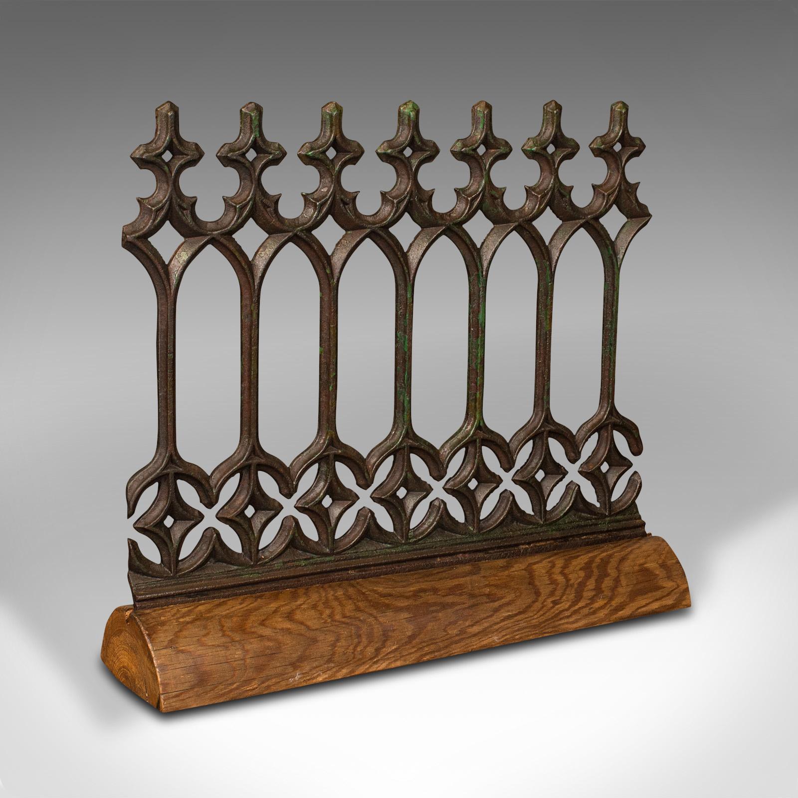 Antique Architectural Gothic Cast Iron Panel on Stand, English, Victorian c.1880