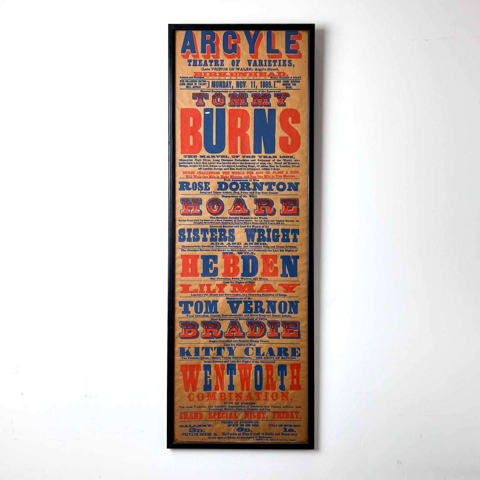 Antique Argyle Theatre Billboard Playbill Poster Dated 1889