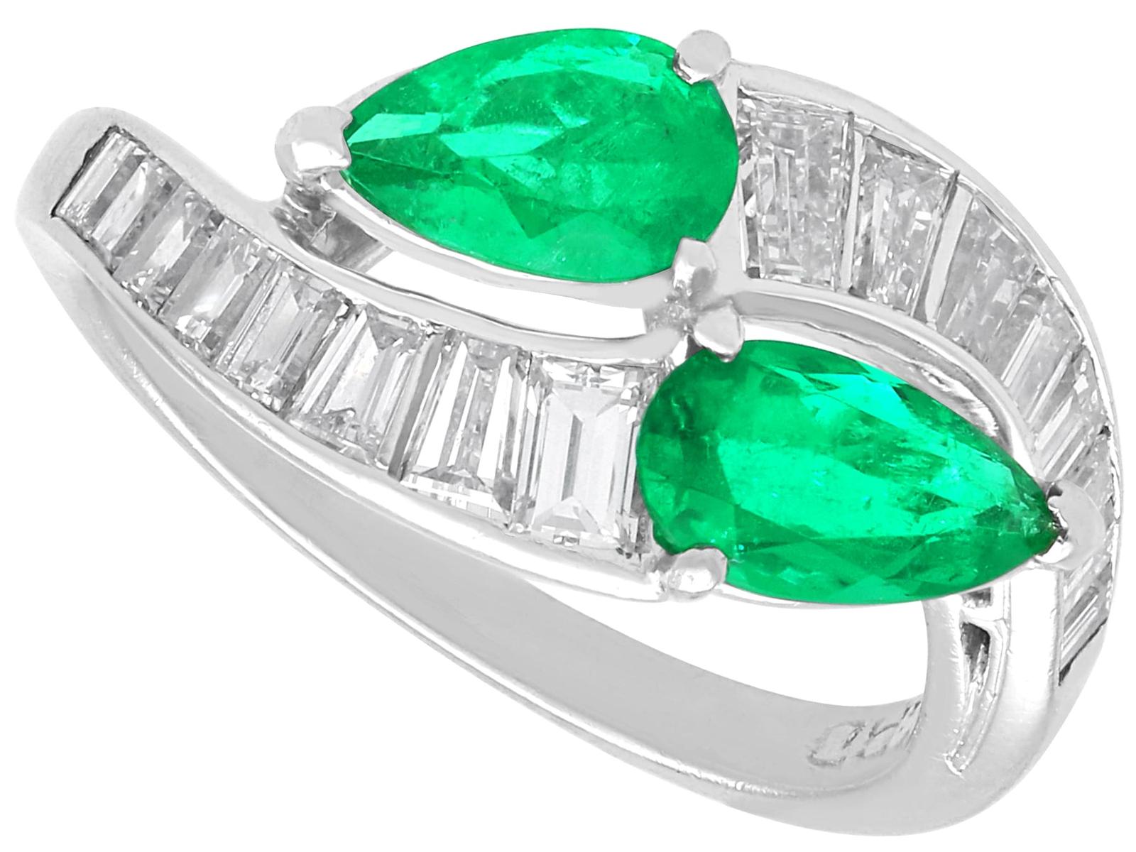 Antique Art Deco 0.90ct Colombian Emerald & 1.20ct Diamond, Platinum Twist Ring c.1920 (1 of 16)