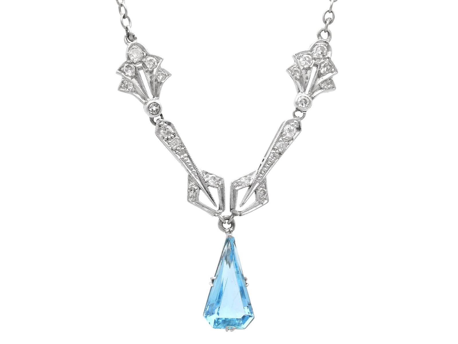Antique Art Deco 1.20ct Aquamarine, 0.28ct Diamond & Platinum Pendant c.1910 (1 of 9)