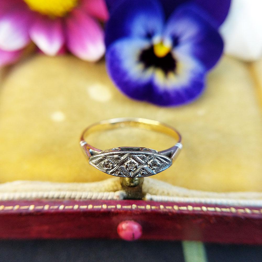 Antique Art Deco 18ct Yellow Gold & Diamond Boat Ring