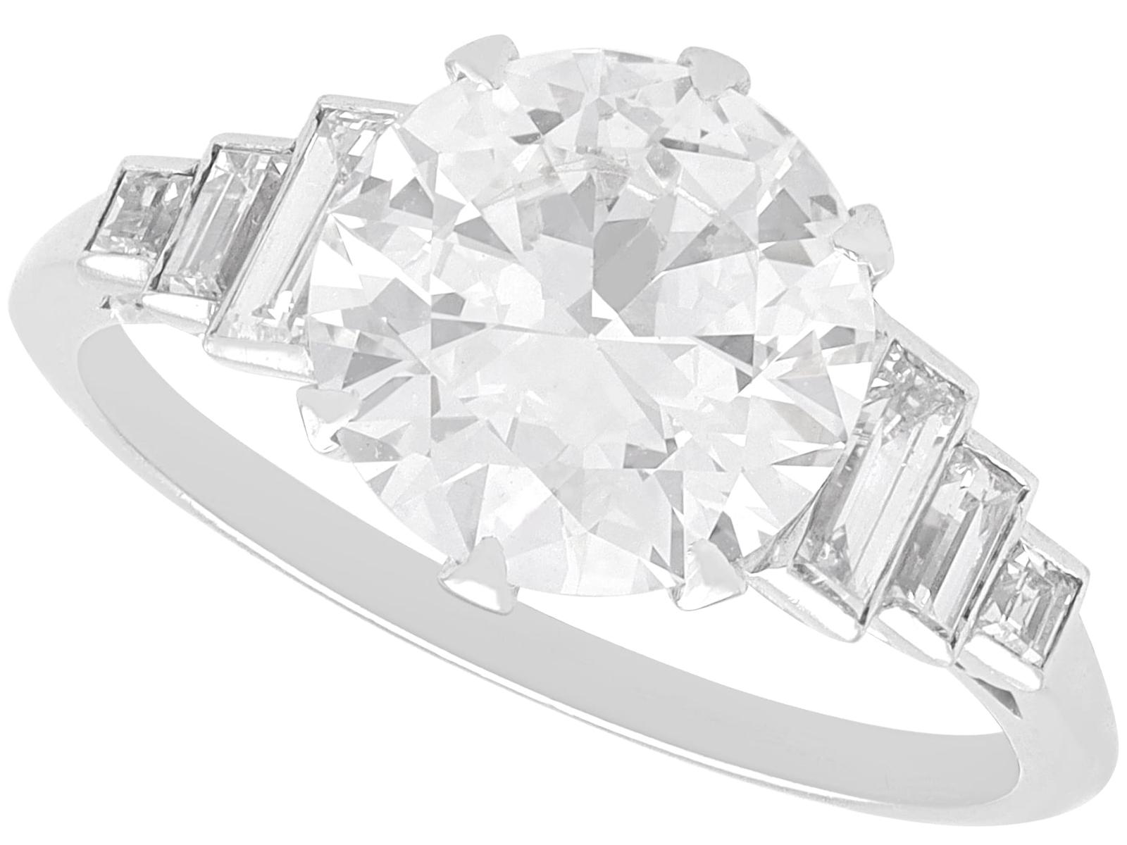 A stunning, fine and impressive antique Art Deco 2.95 carat diamond solitaire ring in platinum; part of our antique engagement ring collection.