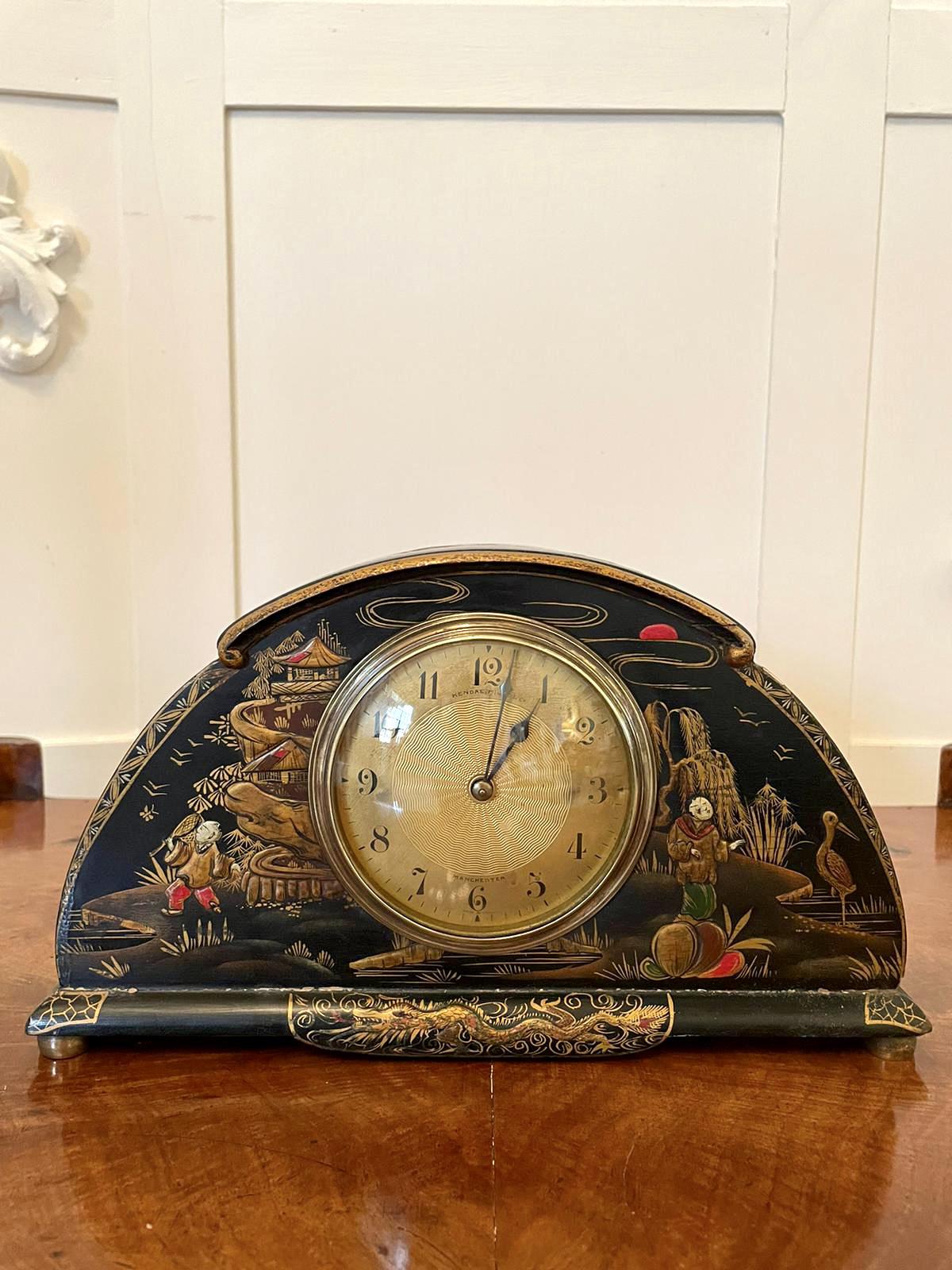 Antique Art Deco Lacquered Chinoiserie Desk Clock (1 of 7)