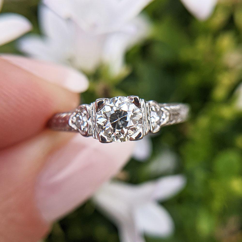 Antique Art Deco Platinum Old Cut Diamond Solitaire Ring, Engagement