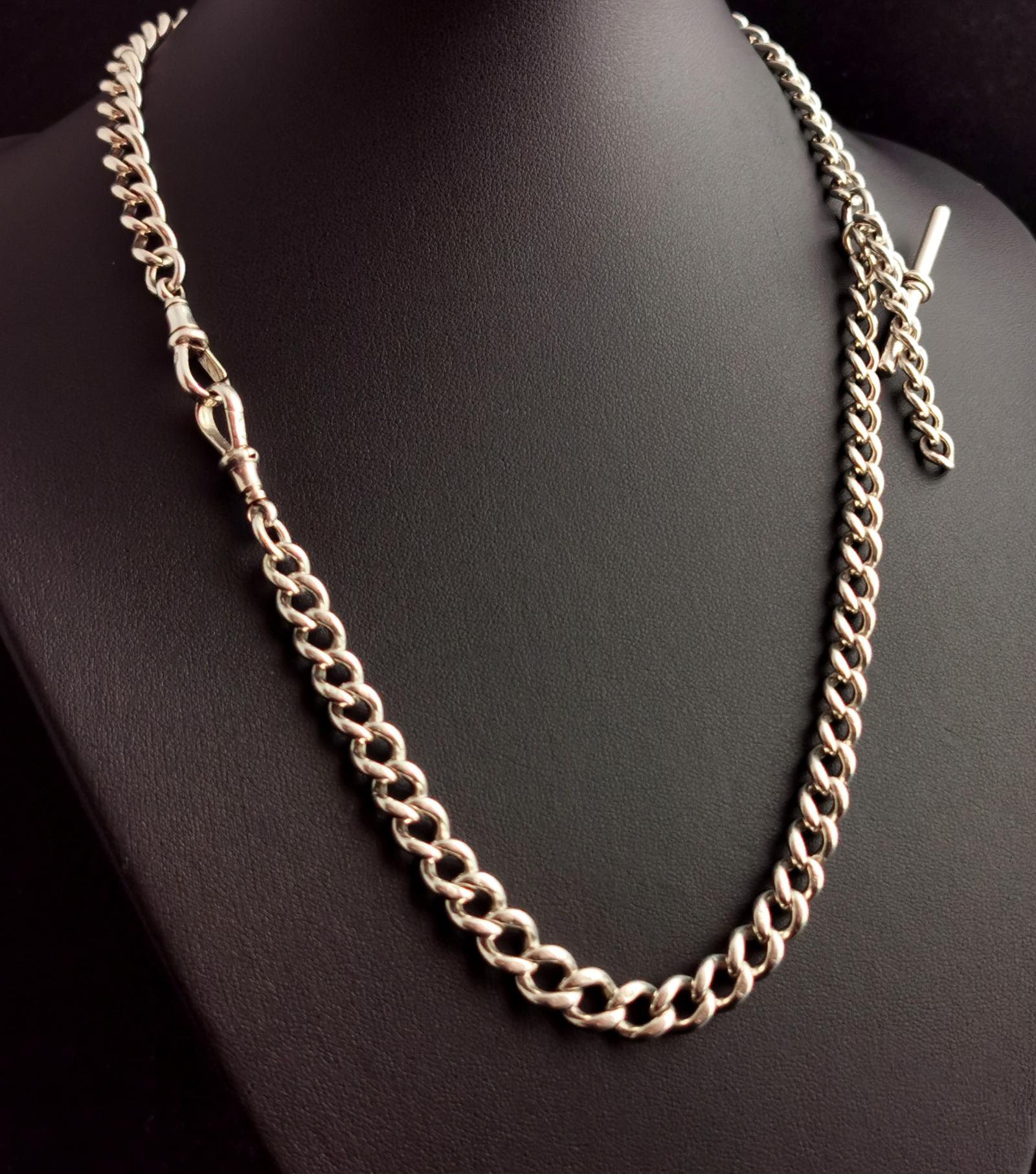 Antique Art Deco Sterling Silver Double Albert Chain, Watch Chain