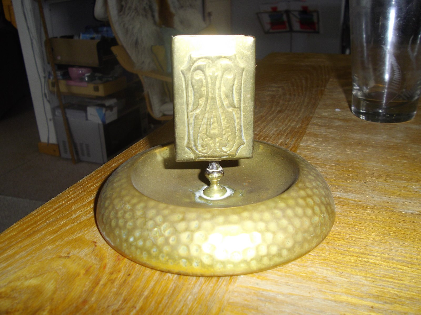 Antique Art Nouveau Brass Matchbox Holder & Strike c.1910