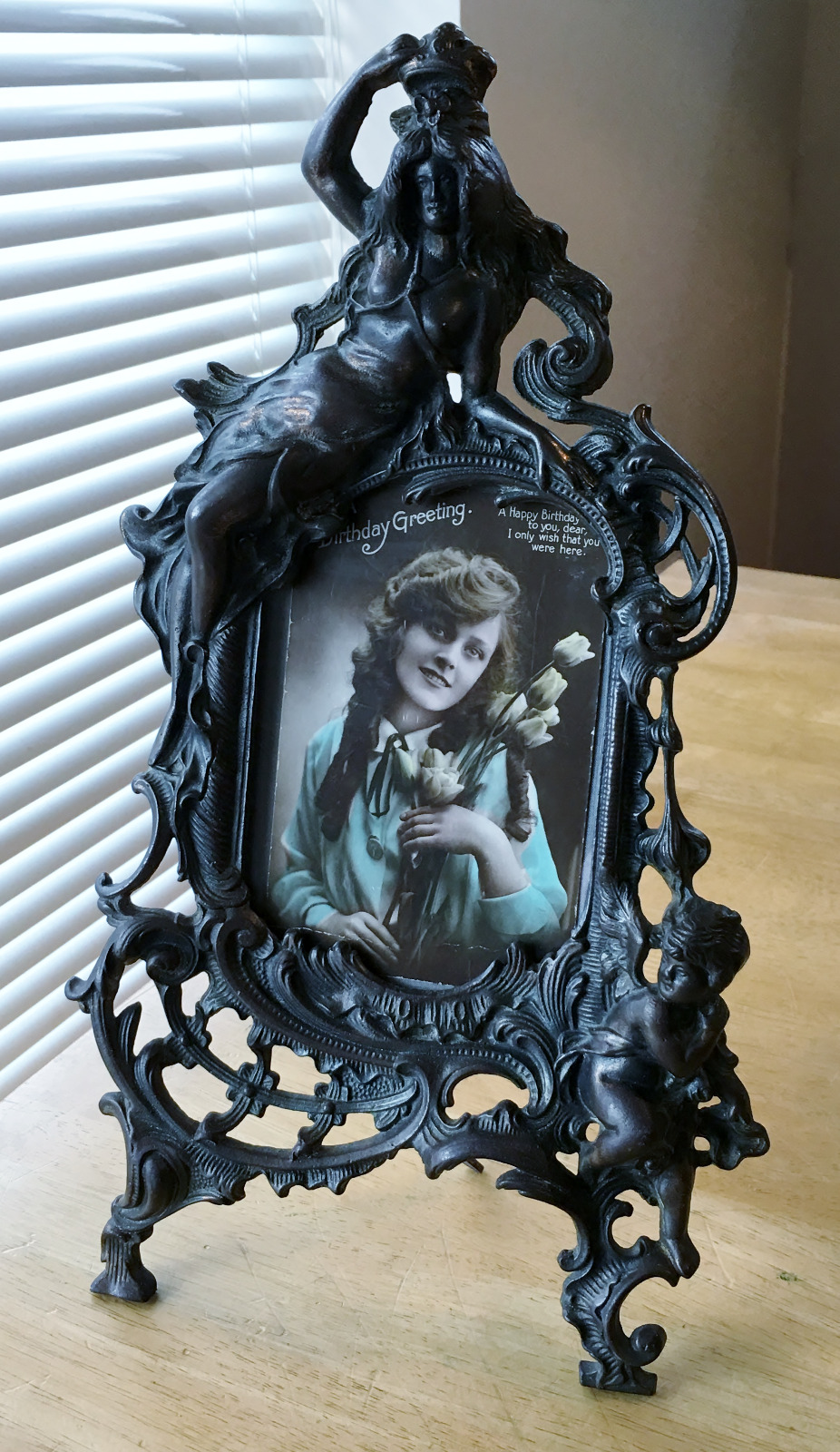 Antique Art Nouveau Cast Metal Photo Frame Marked, ‘Beatrice, No. 1007-P’