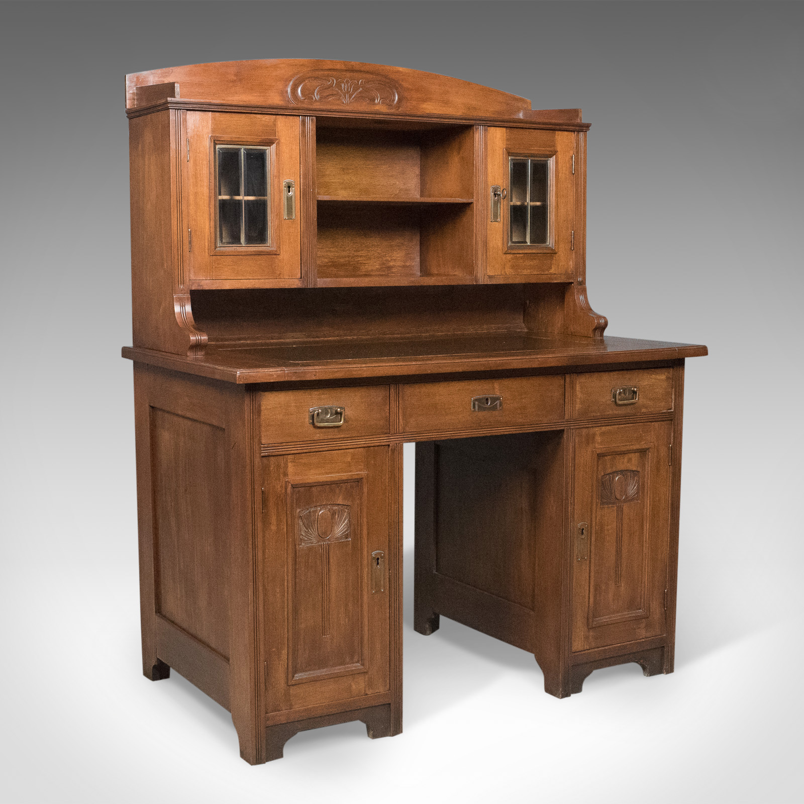 Antique Art Nouveau Desk, English, Victorian, Walnut Cabinet Liberty-Esque C.1900 (1 of 1)