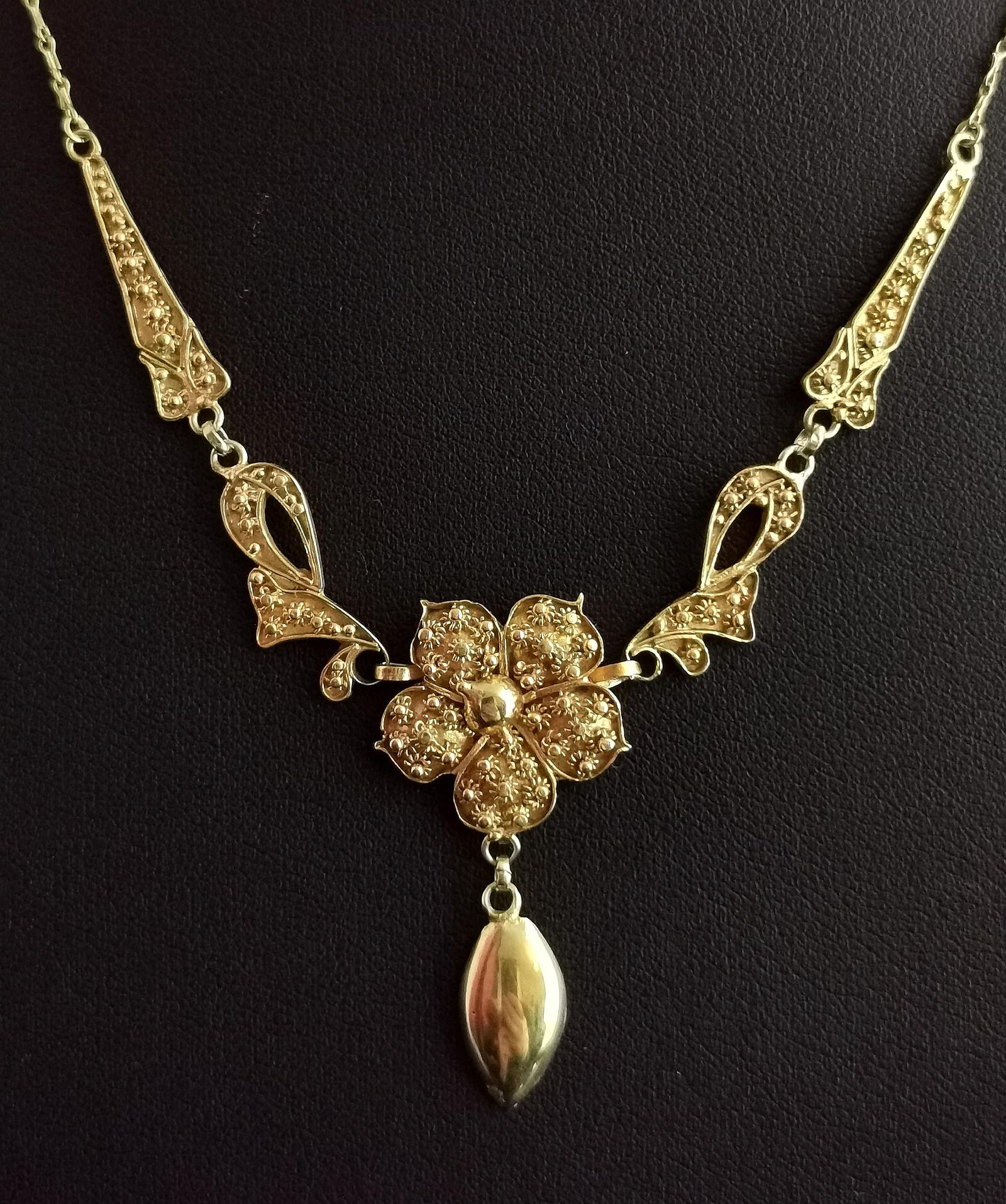 Antique Art Nouveau Drop Necklace, Floral, 22ct Gold