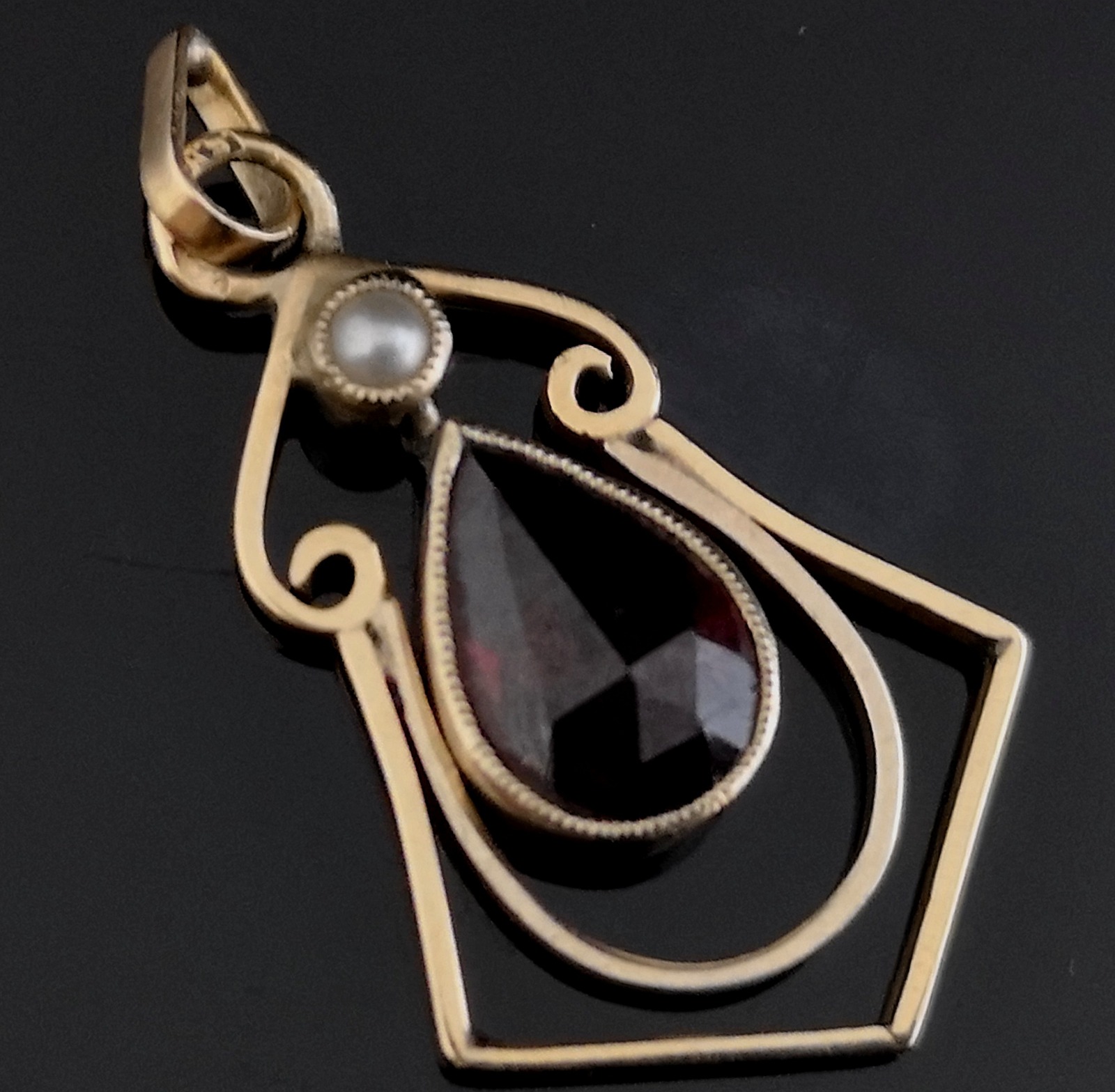 Antique Art Nouveau Garnet Pendant, 9ct Gold