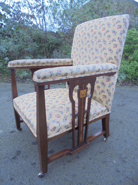 Antique Art Nouveau Inlaid Mahogany Armchair c.1910