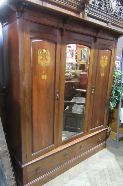 Antique Art Nouveau Inlaid Shapland & Petter Wardrobe & Dressing Table