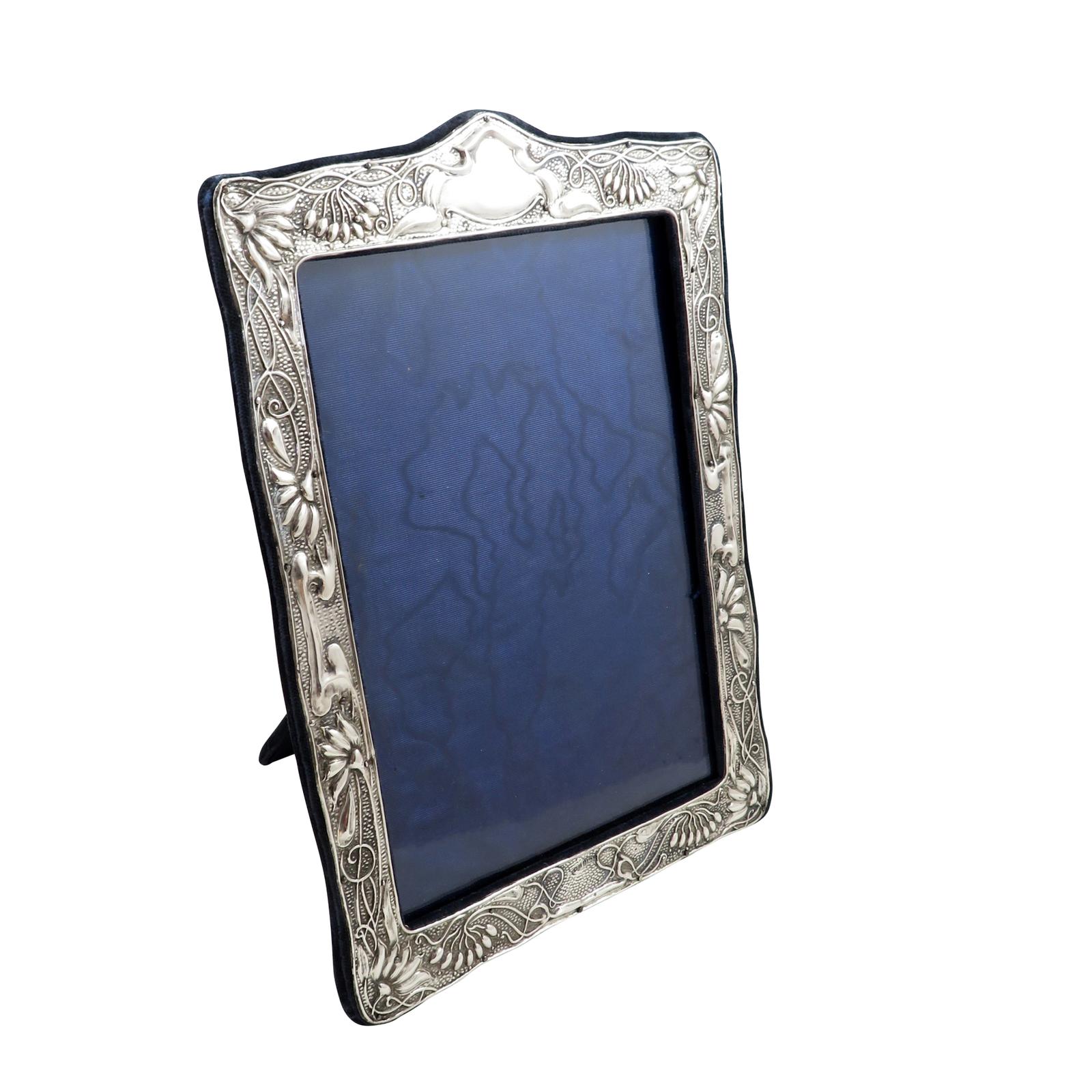 Antique Art Nouveau Sterling Silver 10 1/2" Photo Frame 1903